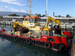 At water depths up to 30 m a jack-up barge or pontoon is often used. As long as the influence of currents and the tide is small, an onshore application with a HYSON top pusher on the operators platform is suitable. Casing tubes between the platform and the river- or seabed are required to support and protect the CPT string.