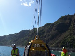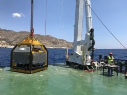 For water depths between 30 and 300 m the near-shore ROSON is a suitable solution. This ROSON is available with a single (ROSON-1D), double (ROSON-2D) and triple (ROSON-3D) wheel drive with pushing forces of max. 70 kN, 140 kN or 200 kN. To avoid the investment in a self-tensioning winch, data communication runs over a free hanging cable to the Icontrol data logger.