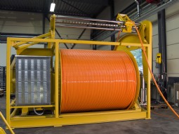 - Een constant tensioning lier die is geoptimaliseerd voor hoge bewegingssnelheden (max. 5 m per sec) van de tool in de boorpijp.