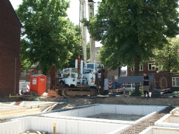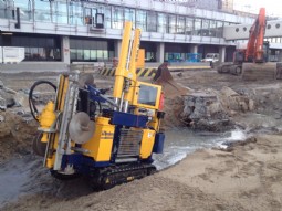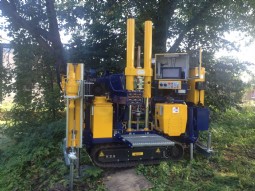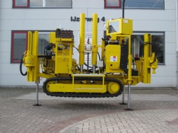 The Midi CPT Crawler is a compact and manoeuvrable CPT system, with a maximum power of 20 tons. The Midi CPT Crawler consists of the renowned CPT penetrometer (HYSON 200 kN) mounted on an undercarriage with rubber tracks. With a weight of about 3,500 kg and a width of only 1200 mm the Midi CPT Crawler fits trough small passages and can be transported in a small truck. To provide the required reaction force for testing, soil anchors are fitted.